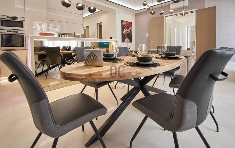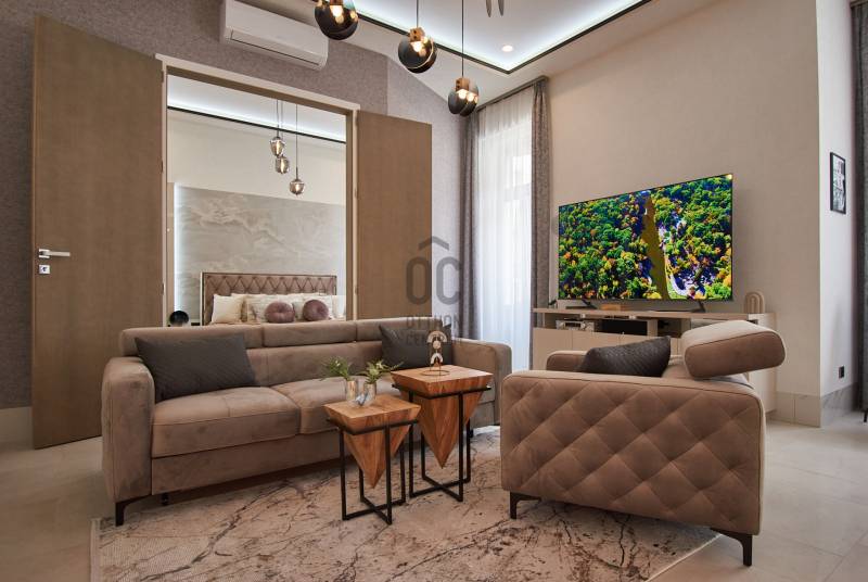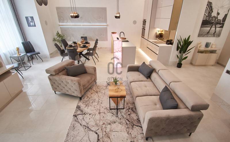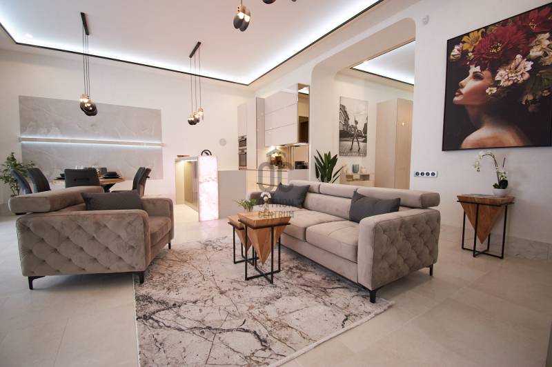 Lépjen be abba a csodálatos világba, ahol a stílus és a luxus találkozik! Tekintse meg ezt gyönyörű budapesti luxuslakást, amelyet teljes körűen felújítottak és álomotthonná varázsoltak.Azonnal magával ragadja az elegáns, históriával rendelkező épület. Ahogy belép az ajtón, lenyűgözi a belső tér fénye és a modern elegancia. A padlóhoz hűen csillogó burkolatok nyújtja az elegáns alapot az Ön számára készített műalkotásnak. A falak finoman csillogó textúrák és árnyalatok harmóniájával kápráztatják el. Az egész lakás olyan palettát hordoz magában, amely mély, de mégis finom kontrasztokkal játszik.A nappali az otthona szívévé válik, ahol az elegancia és a kényelem összeolvad. A modern, ide készített bútorok harmonikusan helyezkednek el a térben, miközben a magas mennyezet nyújtott teret ad az otthonos érzésnek. A kanapé hívogatóan terül el a tágas területen, miközben a puha párnák és a csodálatos művészi elemek kényelmet nyújtanak. Az étkező a társaságok, a baráti összejövetelek és az elegáns vacsorák helyszíne. Az asztal finoman díszített, mintha csak egy művész alkotása lenne. A székek kényelmesek és mégis divatosak. Az étkezőt egy modern hangulatvilágítás díszíti, amely fényjátékot vetít a szoba minden sarkába. A hálószobák pedig a nyugalom és a luxus szentélyei. Az ágyak puhaságába fekve érezheti a kényeztetést. A falakat finoman díszítettek, a beépített elemek a kifinomultság jelképévé válnak. A hálószobák minden kis részletre gondoltak, hogy Ön kényelemben és luxusban pihenjen.A fürdőszobák káprázatosan elegánsak és modernek. A csillogás és fémes elemek elegáns kontrasztja uralkodik. Ez a luxuslakás egyszerre lélegzetelállító és álomszerű. A tökéletes harmónia és az exkluzivitás hangulata árad minden helyiségből. Itt minden részlet a luxusról, a minőségről és a stílusról árulkodik. Egy olyan hely, ahol az álmai valóra válnak, és ahol minden pillanatot értékelni fog.Lépjen be ebbe a lélegzetelállító lakásba, és engedje, hogy elbűvölje a luxus és a stílus páratlan egyesülése.