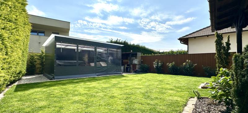 KIVÁLÓ ÁLLAPOTÚ CSALÁDI HÁZ ELADÓ DEBRECEN KEDVELT KERTVÁROSI RÉSZÉN, A FÉSZEK LAKÓPARKBAN!Eladásra kínálunk egy 2007-ben épült, 133 m²-es, amerikai konyhás nappalival és 3 hálószobával rendelkező, kétszintes családi házat, amely modern kényelmével és gondosan kialakított tereivel igazi otthont teremt új tulajdonosai számára.Az ingatlan főbb jellemzői:Porotherm tégla falazat + 10 cm hőszigetelésHőszigetelt műanyag nyílászárók motoros alumínium redőnnyel és rovarhálóvalElegáns borovi fenyő beltéri ajtókModern gépészet: Immergas gázkazán (2018), padlófűtés, BWT vízlágyító4 db inverteres klíma, energiatakarékos 5,8 kW napelem rendszerBiztonság: riasztó és kamerarendszer18 m²-es garázs + fedett beálló 2 autó számáraTágas terasz a nappaliból közvetlen kijárássalHelyiségek elosztása:Földszint: nappali + étkező + konyha (36 m²), spájz, dolgozószoba, mosókonyha zuhanyzóval, WC, beépített szekrény, teraszEmelet: 3 hálószoba, előszoba, fürdőszoba + WC, gardrób, erkélyKert és wellness élmény:A 390 m²-es parkosított kert igazi kikapcsolódást kínál:gyep, vakondháló, automata öntözőrendszer, fúrt kútgrillsarok, kerti tárolótéliesített wellness terasz 5 személyes Wellis jakuzzivalElhelyezkedés és előnyök:A szabadon álló épület teljes benapozottságot biztosít, így a ház rendkívül világos és alacsony fenntartási költségű.A közelben minden megtalálható: bevásárlóközpont, buszmegálló, kerékpárút, óvoda, iskola, orvosi rendelő, gyógyszertár.✅ Az ingatlan CSOK Pluszra és hitelfelvételre is alkalmas!Amennyiben felkeltette érdeklődését, várom hívását – akár hétvégén is szívesen bemutatom!