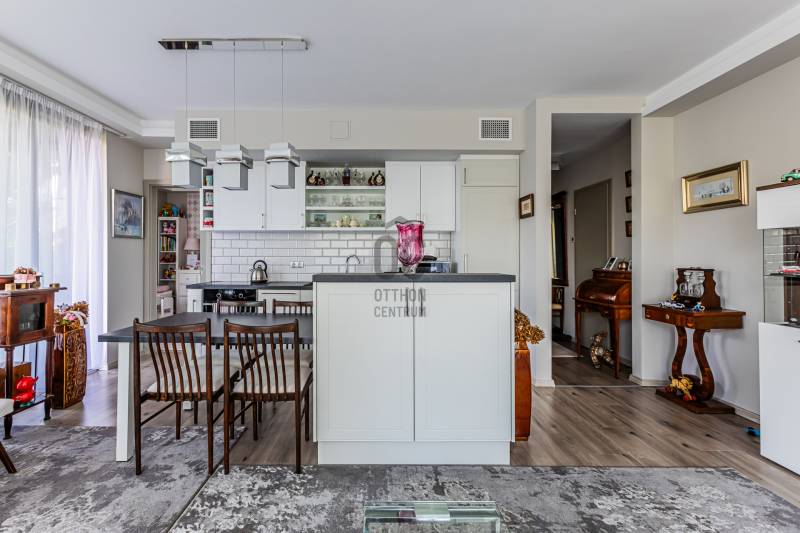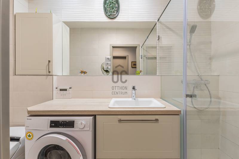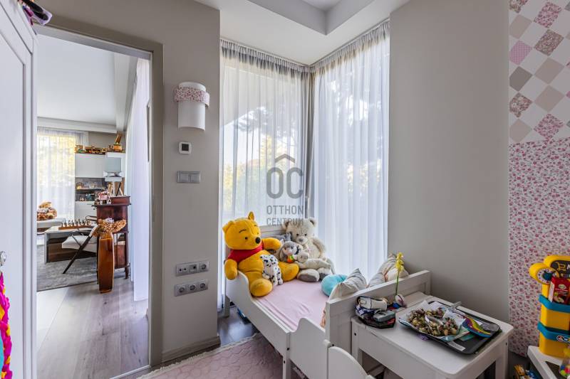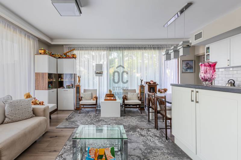 Eladó egy különleges, kiváló állapotú,bruttó 83 m2-es, 3 szobás lakás TestvérhegyenAz ingatlan egy öt lakásos, modern, liftes társasház földszintjén helyezkedik el, amely 2021-ben került átadásra, újszerű állapotú.A lakás egy tágas, napfényes, kertkapcsolatos amerikai konyhás nappaliból, egy hozzá szervesen kapcsolódó 24 m2-es teraszból, két hálószobából, egy zuhanyzós fürdőből és egy előszobából áll.A lakáshoz egy 300 m2-es kizárólagos használatú díszkert tartozik. A lakás kivitelezése prémium minőségű. A fűtésről, hűtésről Daikin hőszivattyú gondoskodik, mely fal- és padlófűtést, a meleg nyári napokon pedig fal hűtést biztosít. Kiváló minőségű fa nyílászárók, a nappaliban hatalmas tolóajtók kerültek beépítésre, melyek valós összeköttetést biztosítanak a lakótér és a kert között.Prémium minőségű burkolatok és szaniterek, kiváló minőségű konyhagépek. Ide csak beköltözni kell!A lakáshoz tartozik egy tágas teremgarázs férőhely, melyhez fűthető lehajtó vezet, valamint szintén a garázs szinten egy 6 m2-es tároló is. A garázs és a tároló kötelezően megvásárolandó. A garázs ára 10 millió, a tároló ára 5 millió forint.A lakás akár egy héten belül birtokbavehető, tehermentes, rendezett jogi hátterű. Az ingatlan bútorozva is megvásárolható.A tulajdonos, ha van erre lehetőség, visszabérelné az ingatlant. Így befektetésnek is jó választás lehet. Kiváló egyhelyezkedés, Táborhegy és Testvérhegy határán. Csendes, nyugodt környezet, mégis minden egy karnyújtásnyira.Ne késlekedjen, nézze meg még ma ezt a különleges adottságú ingatlant! Nem fog csalódni. Ez tényleg olyan, mint a képeken!