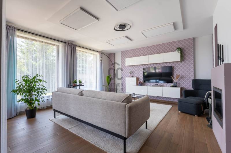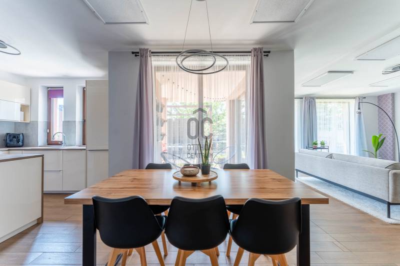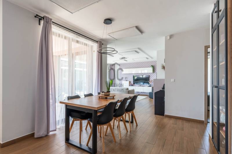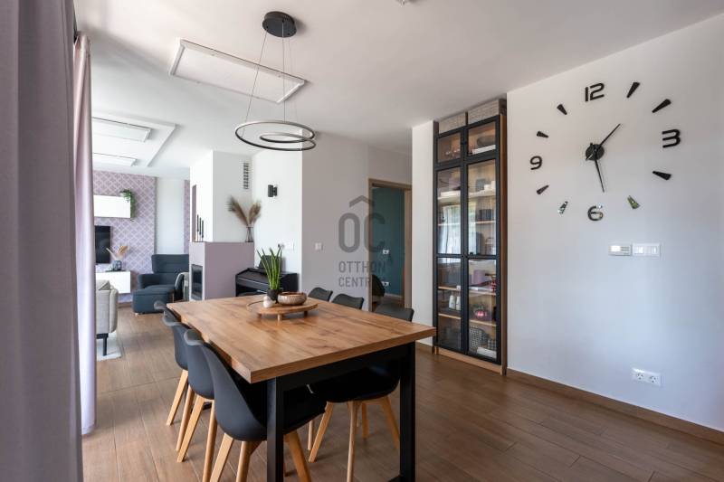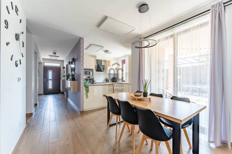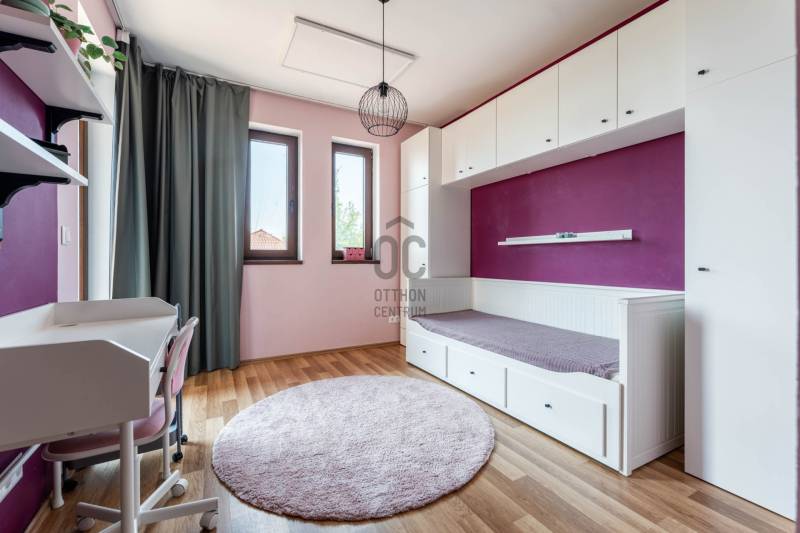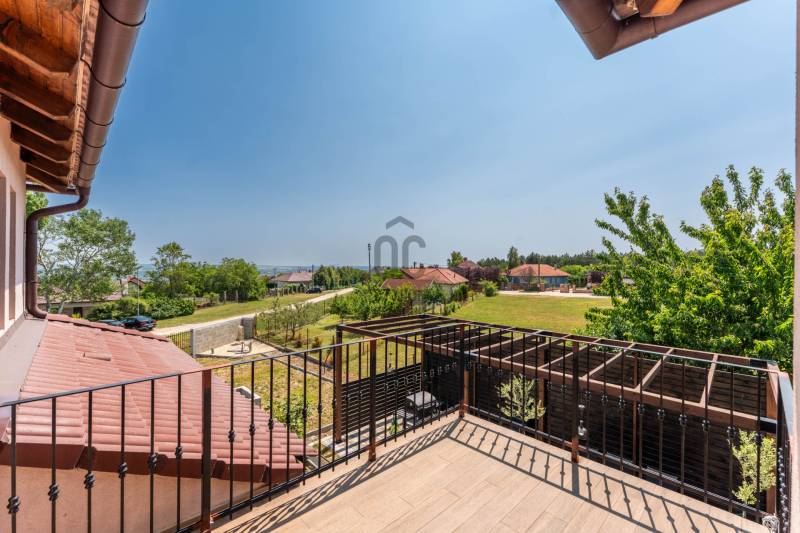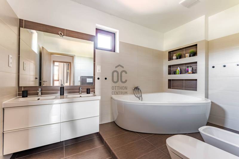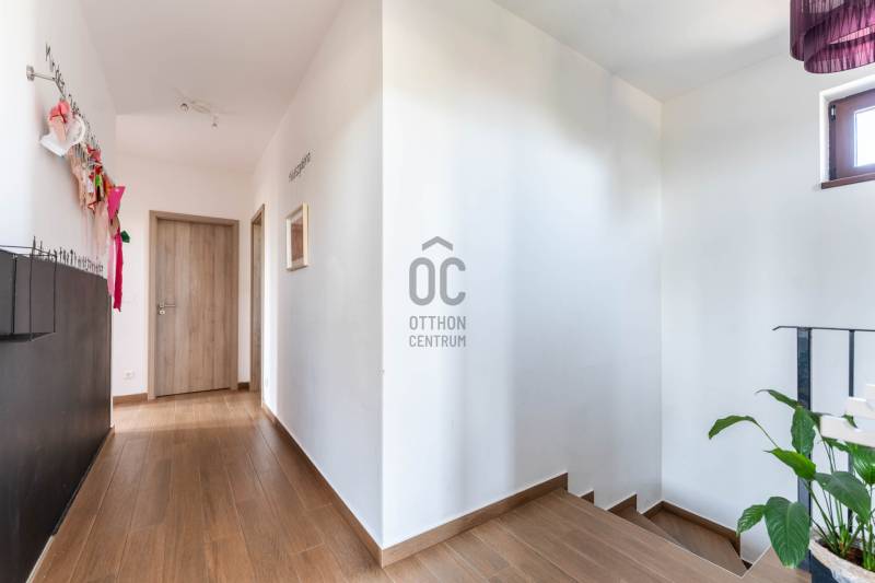 Várpalotán kínálunk megvételre, egy mediterrán stílusú, kiváló állapotú, 2 szintes, 6 szobás családi házat.A ház főbb jellemzői:* 2015-ben épült, téglafalazattalSzigetelés:* 15 cmVillanyvezeték:* rézkábelVízvezeték:* műanyagFűtés:* infrapanel, de emellett rendelkezésre áll egy fatüzelésű kandalló is.Nyílászárók:* 3 rétegű műanyagTetőszerkezet:* betonfödémes, nyeregtetősKözművek:* villany 3x16A, 3 fázis (éjszakai, nappali)* víz* gázcsonk a telken belül, csatorna az utcában található.Szennyvíz:* BioTelek méret:* 819 m2A földszinten, a közlekedőbe, a konyha-étkezőbe és a nappaliba padlófűtés került kialakításra, az emeleten a közlekedőbe, valamint a fürdő-Wc-be szintén.A házhoz tartozik egy 8 m2-es erkély, egy 8.5 m2-es terasz, egy 8x4 m pavilon, valamint egy 6x6 m2-es garázs is.Az ingatlan riasztóval és kamerával is fel van szerelve.A ház Várpalota egyik legfrekventáltabb, legkedveltebb részén helyezkedik el, csodálatos panorámás kilátással.Nagycsaládosoknak, vagy akár befektetőknek is kimondottan ajánlom.Az ingatlanról készült videófelvételt is érdemes megtekinteni!Nagyobb városok közül Székesfehérvár 22 km, Veszprém 29 km.Amennyiben a vásárláshoz ingatlant kell eladnia, abban is szívesen együttműködöm Önnel, ha hitelt kell felvennie, bankfüggetlen hitelszakértőnk áll rendelkezésére!Bővebb infóért várom jelentkezését!Ez az ingatlan a \"Felező csomag\" megbízási portfólióhoz tartozik. Részletek az Otthon Centrum weboldalán.