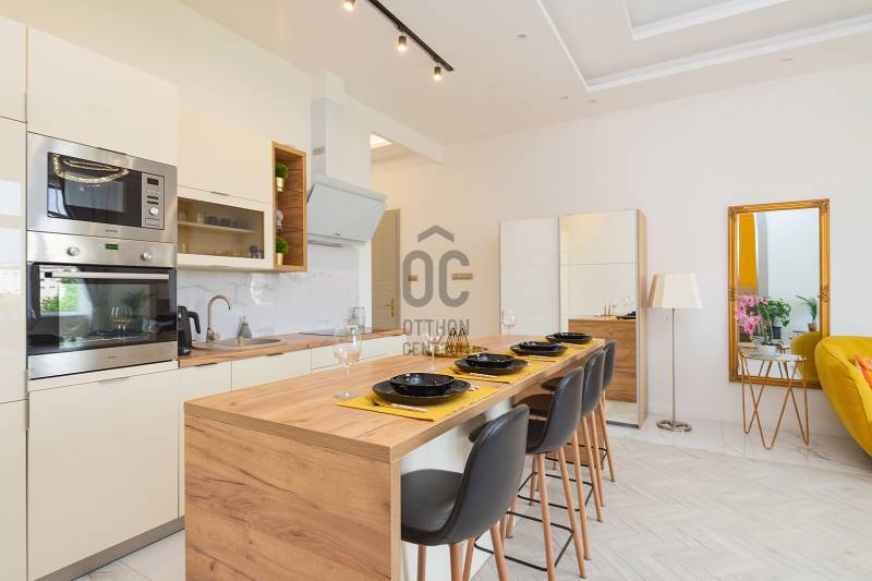 Ingatlanséta: http://www.youtube.com/watch?v=4oKXSiLXJSM Budapest egyik legpatinásabb városrészében, az I. kerületi Krisztinaváros Lánc-hídhoz közel eső részén kínálok eladásra egy teljeskörűen felújított, kifinomult ízléssel berendezett, erkélyes, örökpanorámás 3 szobás lakást. Mind a nappaliból, hálószobából, erkélyről városi panoráma tárul elénk.Mindkét hálószobához saját fürdőszoba tartozik (összesen 2 db), maximális komfortot biztosítva. Az ingatlan magas minőségű anyagokkal, prémium szinten lett felújítva – új gépészet, burkolatok, padlófűtés, klíma, új nyílászárók és beépített bútorok kerültek a lakásba. Csendes lakás, a duplán szigetelt gerébtokos ablakoknak köszönhetően az utca zaja nem hallatszódik fel.A nagy belmagasságnak és sok ablaknak köszönhetően világos, minden helyiségben egyedileg vezérelhető padlófűtés és klíma található.Jó állapotú, liftes társasházban található. FELSZERELTSÉG: -minőségi (beépített) bútorok- kombinált hűtőszekrény, indukciós főzőlap, mikrohullámú sütő, páraelszívó, vízforraló, kenyérpirító- Delonghi kávéfőző- Samsung gépek (TV, porszívó stb)- szobánként termosztátos szabályozó....Teljes berendezési lista elérhető!LOKÁCIÓ: Lánc-híd, Budai-Vár, Gellért-hegy akár gyalogos távolságra elérhető.Krisztinaváros a budai oldal egyik legkeresettebb, biztonságos, elegáns környéke. A közelben elérhető:- Tömegközlekedés (villamos, busz, metró)- Iskolák, óvodák, orvosi rendelők- Hangulatos kávézók, éttermek, kulturális intézmények-Tabán park, Gellért-hegy, Budai Vár– ideális helyszínek kikapcsolódásra.Azonnal birtokba vehető!További információért keressen bizalommal!