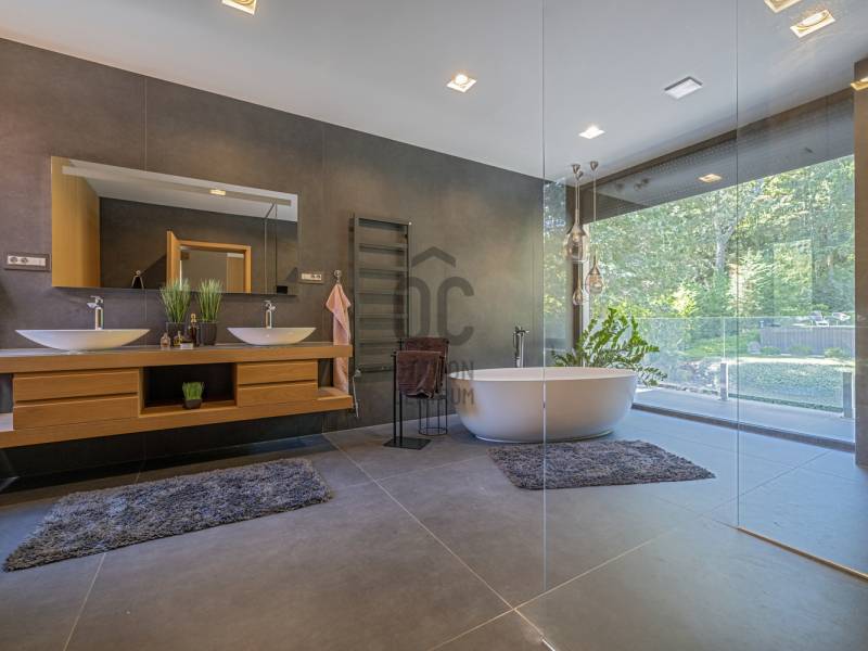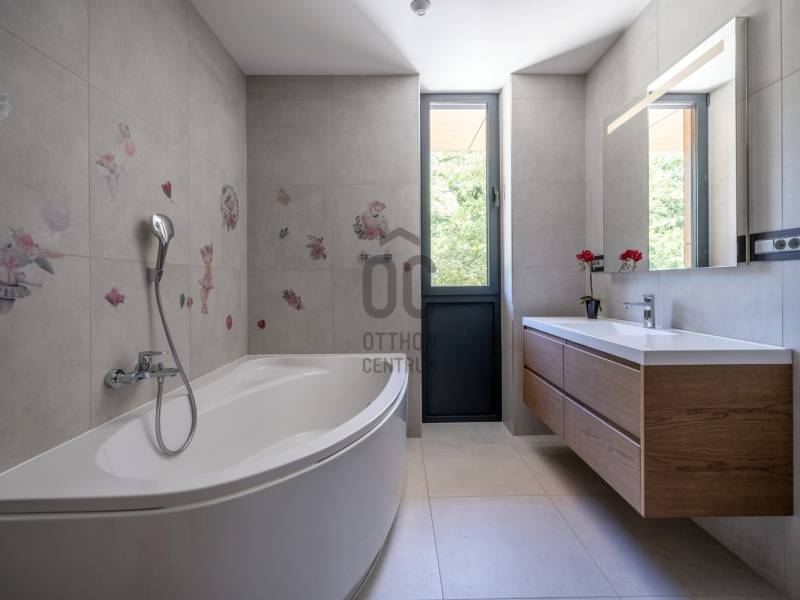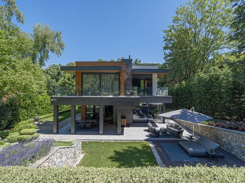 Budapest egyik legelőkelőbb és legcsendesebb zöldövezetében, a II. kerületben, Petneházyréten kínálunk eladásra egy kivételes adottságokkal rendelkező, háromszintes, 440 m²-es luxusvillát.A 2020-ban épült, mod ern 6 szobás ingatlan gondosan parkosított, közel 1800 m²-es telken helyezkedik el, fák ölelésében, távol a város zajától, mégis könnyen megközelíthető helyen.A villa több szinten elterülő, tágas belső tereit letisztult elegancia és jól átgondolt térkialakítás jellemzi, ahol minden részlet a kényelmet és a praktikumot szolgálja.Alsó szint:– Négyállásos garázs– Különálló dolgozószoba– Tágas tárolóhelyiség– Mosókonyha– Fürdőszoba és gardróbKözépső szint:– Impozáns, közel 85 m²-es nappali, étkező és konyha egy légtérben– Vendégszoba saját fürdőszobával– Vendég-WC– Két külön tárolóFelső szint:– Három hálószoba– Két fürdőszoba– Két gardróbhelyiségKültéri extrák:– 100 m²-es panorámás terasz beépített jakuzzival– Medencetér napozóval– Sütögetőterasz– Automata öntözőrendszerrel felszerelt, gondozott kertAz ingatlan forgalomtól mentes, csendes utcában található, közvetlenül az erdő közelében, teljesen elszeparált kerttel, amely meghitt és privát hangulatot biztosít. A gondosan karbantartott kertet dús növényzet és virágzó zöldfelületek díszítik, így a természet közelsége itt valóban kézzelfogható élmény.A legmodernebb gépészet gondoskodik az év minden napján tökéletes komfortérzetről: Viessmann fűtési és hűtési rendszer, okosotthon-vezérlés (redőnyök és kapuk: Loxone), frisslevegő-szellőztetés (Helios), valamint kiépített kamerás biztonsági rendszer.Ez az ingatlan olyan igényes vevőknek készült, akik Budapest természetközeli, mégis reprezentatív környezetében keresnek kompromisszummentes, időtálló otthont.Egyedi igényekre szabott lakáshitelekkel állunk rendelkezésére. Bankfüggetlen hitelcentrumunk az országban elérhető összes bank és hitelintézet ajánlatát versenyezteti az Ön számára díjmentesen. Munkatársaink nagy szakmai tapasztalattal várják Önt az előre egyeztetett időpontban akár a normál munkaidő után is.