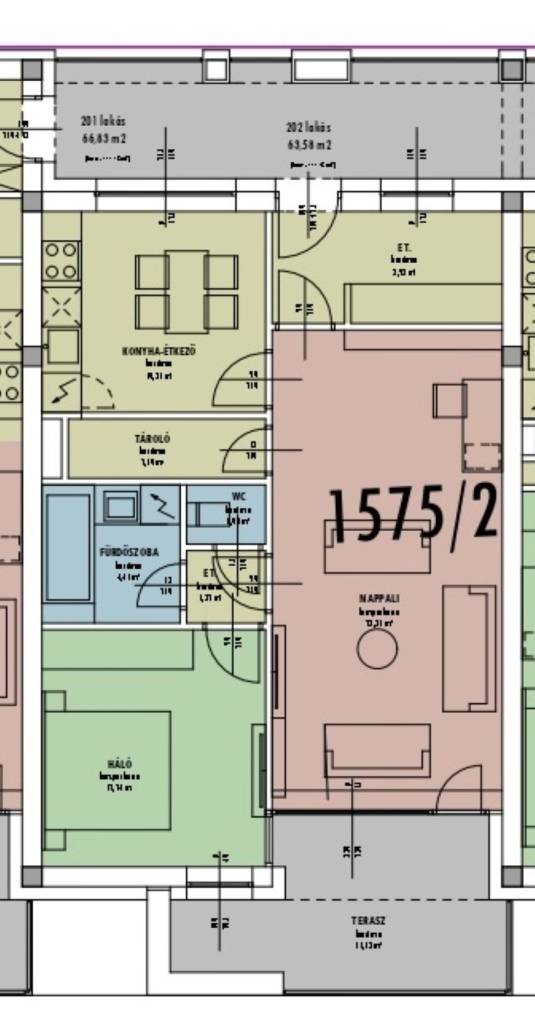 Lakások eladók Nyíregyháza belvárosában a Kossuth utca 34 szám alatt épülő új építésű A+ besorolású társasházban.Árak: 62.920.000 Ft-tól kezdődően mérettől függően.A modern megjelenésű társas házi épület Nyíregyháza belvárosában, a Kossuth utca – Sólyom-köz saroktelken valósul meg. A gyalogos főbejárat és az alagsorban elhelyezkedő mélygarázs bejárata is a Kossuth utca felől nyílik, míg a földszinten elhelyezkedő teremgarázs megközelítése a Sólyom köz felől létesül.Az alagsorban 16 db a földszinten pedig 12 db fedett kocsi beállót alakítunk ki, melyek külön megvásárolhatók. Az épület földszintjén 1 db iroda és egy tágas fogadó tér lesz, amiből a lépcsőház és lift közelíthető meg. Az I-II-III emelet 7 db és a záró szinten 6 db lakás helyezkedik el, méretüket tekintve : 14 db lakásunk készül ami 60 m2 fölötti, 2 db ami 50-60 m2 közötti.Figyelem!A lakások többsége már elkelt, az aktuálisan elérhetőkről telefonon tudunk tájékoztatást adni!Az új építésű társas ház várhatóan 8 hónapon belül kerül átadásra, mely korszerű hő takarékos építészeti megoldásokat alkalmazva készül el. A falazata monolit vasbeton vázszerkezettel Porotherm 30 X-Therm Rapid dryfix kerámia tégla falazatta épül, mely 12 cm-es EPS Grafit homlokzati hőszigetelést kap. Az épületeken belüli lakáselválasztó falak hangtechnikai méretezésnek megfelelő Porotherm 30 AKU Z hangátló falazóblokkokból készülnek, a szükséges helyeken vasbeton pillérekkel, merevítő falakkal. A lakásokon belüli válaszfalak Ytong PVE 10 NF falazóblokkokból készülnek.Az ablakok és erkélyajtók külső oldalon antracit, belső oldalon fehér színű, korszerű 3 rétegű hőszigetelő üvegezéssel készülnek. Az épületben 1 db 8 személyes (bútorszállításra is alkalmas kivitelű) korszerű hívólift kerül beépítésre. A mélygarázs bejáratánál távirányítással működtethető garázskapu kerül elhelyezésre. Az épület fűtése és meleg víz előállítása központilag történik korszerű hőszivattyúkkal, valamint a lakások hűtését is központi hőszivattyú által működtetett magas fali fain col-ok látják el. A lakások fűtése egyedileg szabályozott (saját termosztáttal) padlófűtés. A lakások hideg és meleg víz elmérőkön keresztül kapcsolódnak a ház rendszerére. A lakások 1x32 A elektromos kapacitással rendelkeznek. A kaputelefon rendszer digitális, ajtónyitó funkcióval ellátott, a bejáratnál kültéri egységgel és lakásonként beltéri egységekkel.A ingatlan ideális választás lehet mindazok számára, akik új építésű, modern energiatakarékos otthont keresnek Nyíregyháza belvárosában.Fontos!Az lakásokra az új 3%-os hitel és CSOK Plusz is igénybe vehető!Magas minőségű anyagok, prémium kivitelezés, 2025-ös energetikai szabványoknak megfelelő modern megoldások.Ha felkeltette érdeklődését, hívja irodánkat bizalommal!Ha hitelre van szüksége éljen ingyenes, személyre szabott hitel ügyintézési szolgáltatásunkkal is.