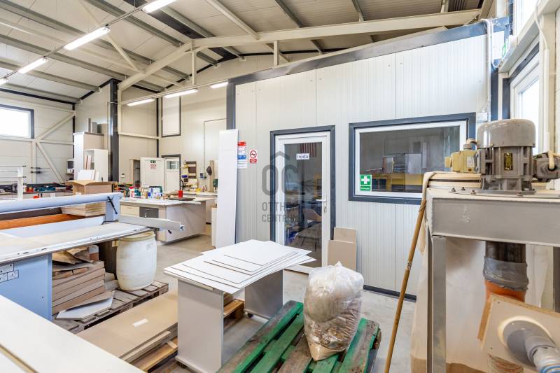 Eladásra kínálunk egy 4517 m²-es, kiváló adottságú ipari területet Zsombón, közvetlenül a főút mellett.Az ingatlan 2022-ben épült, 2023-ban kapott használatbavételi engedélyt, jelenleg iroda, raktár és asztalos üzem funkcióval működik.________________________________________ Főbb jellemzők•Telek mérete: 4517 m²•Hasznos alapterület: 345m2•Üzemi terület 2 x 119m2, kéregerősített ipari betonpadló•Épület szerkezete: acél vázszerkezet, PIR habos szendvicspanel falazat•Burkolat: csúszásmentes greslap•Két elektromos ipari kapu: 2 db 3,1m× 3 m méretű•Padlófűtés a csarnokban•Feltöltött terület az épület körül a teherbírás növelése érdekében________________________________________ Közművek és műszaki adatok•Villamos energia: 3×32A lekötés, trafó a telekhatáron, biztosítva a bővítés lehetőségét•15 kW-os napelemrendszer (szaldós elszámolással)•Fűtés-hűtés: elektromos hőszivattyús rendszer•Hővisszanyerős légcserélő •Szociális helyiségek: automata szellőztetéssel•Víz: a műút túloldalán kb. 150 m-re (közvetlen szomszéd, már kezdeményezte a lekötést)•Fúrt kút •Szennyvíz: 10 m³ kommunális és 5 m³ technológiai tartály•Tűzivíztározó a telek részeként________________________________________ További lehetőségek•Opcionálisan megvásárolható több mint 20 éve működő, jól prosperáló cég is az ingatlannal együtt•Igény szerint a felszereltség csökkenthető, melynek függvényében az ár rugalmasan alakítható________________________________________ Ár: 119.900.000 Ft + áfaVárom hívását! Kapcsolat: +36 70 454 2063