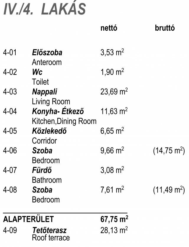 V. kerület Belvárosi részén, napfényes, magasemeleti luxus lakások kerülnek kialakításra a kivitelezéssel párhuzamosan pedig az épület korhűen megújul és egyidejűleg modern felvonó kerül beépítésre. Összesen 105m2 lakóterülettel rendelkezik ez a remek kéthálószobás, tetőteraszos ingatlan. A bejárati szinten a konyha nappali mellett egy vizes helyiség kerül kialkaításra, a hálószobák az élettértől jól elszeparálva az emeleten kapnak helyet a mellékhelyiségekkel, innen jutunk fel a privát 28m2-es tetőteraszra mely kizárólag ennek a lakásnak a kényemét biztosítja. Az előrelátó tervezésnek köszönhetően nem lakószobából megközelíthető a tetőterasz így valóban szerves része lehet a lakásnak. A mellékelt látványtervek csupán egy, a számtalan megvalósítható lehetőség közül, jelen stádiumban még 100%-ban lehetséges a leendő tulajdonosok elképzeléseinek megvalósítása.• ÉS MIÉRT ÉPP EZ A LEGMEGFELELŐBB VÁLASZTÁS?• Kitűnő lokáció a az ország legjobb egyetemei közelében• Remek tömegközlekedési lehetőségek• Őrzött mélygarázs a közelben• Minden egyes lakás, intim, napsütötte terasszal rendelkezik• Műemlék környezet a klasszikus Belvárosban• Igény szerinti 100%-ban testre szabott lakások• Igény esetén extra felszereltség a minőségi lakhatásértA 90m2-es értékesítési alapterület tartalmazza a nettó 68m2-es lakótéren felül 190cm alatti területek (9m2) és a terasz (28m2) területének 50%-át.Külön megbízás keretében a megvásárolt lakás teljes bútorozását és felszerelését vállaljuk a bérbeadással és utógondozással együtt így Önnek csak a bérleti díj beérkezését kell ellenőriznie. Műszaki leírásért és a projekt többi lakásaiért látogassa meg a regionn IMMO Kft honlapját.Szükség esetén banksemleges hiteltanácsadással tudjuk segíteni a kiszemelt lakás megvásárlását.