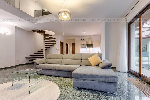 Elegáns rezidenciának beillő Andrássy úti lakás tágas terekkel és élvezhető terasszal. Napfényes, K-i tájolású, dupla komfortos belvárosi lakás melyben garantáltan nem fogja bezárva érezni magát. Az alsó részen a közösségi terek mellett egy fürdő és háztartási helyiség került kialakításra. A konyha + étkező és nappali 56m2, nagy ablakokkal megspékelve, a konyha teljesen felszerelt. Az emeleten a háló szobák remekül szeparálódnak, fürdőszobákban márvány burkolatok, igényes szaniterek. Az összes helyiségben a fűtés mellett a hűtés is megoldott. Minőségi nyílászárók, burkolatok és üveg korlátok jellemzik a belteret. A fotógalériában az alaprajz is megtalálható. A második hálószoba igény szerint kerül bútorozásra. Szállsáhely szolgáltatók kíméljenek.