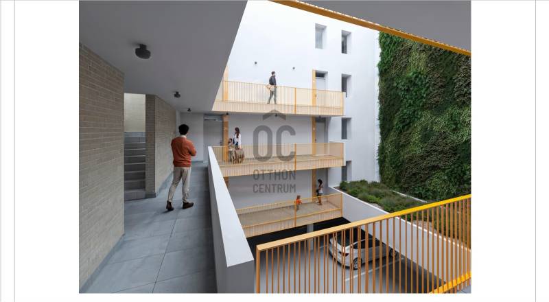 Társasház a Belváros szívébenDebrecen abszolút Belvárosában, a Nagytemplomhoz közeli részén kerül kivitelezésre ez az egyedi tervezésű, 17 lakásos, liftes társasház.Válasszon a piacon legkeresettebb méretű,még elérhető 35-51 nm-es, loggiás, nappali +1 vagy 2 szobás lakáskínálatból!A 4 emeletes társasház két utcáról is megközelíthető, a lakások kiváló elrendezésűek.Gépkocsi beállók ( 10 Mft/db) a földszinten és a -1 szinten találhatók.Ez az 3. emeleti lakás 41,34 nm-es, nappali-étkező-konyha +1 szobás, 9,19 nm-es loggiával.Műszaki adatok:- teherhordó falak Porotherm 30 N+F- belső térelválasztó falak gipszkartonból- hőszigetelése 15 cm THERMODAM rendszer, 1,5 cm nemes vakolattal- házközponti hőszivattyús fűtés, minden helyiségben padlófűtés- lakásonként egyedi hőmennyiség mérő- hűtés: hőszivattyús rendszerrel, vagy AUX hőszivattyús 2,7 kw-os klímával- műanyag nyílászárók 3 rétegű hőszigetelt üvegezéssel- beépített elektromos, távirányítós redőnyök- 90X200-as üvegfalú zuhanyozóA belvárosban található ingatlan pár perc sétára van a Nagytemplomtól, a Piactól és a Bevásárló központoktól.Projekt bemutatása--