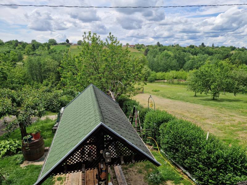 Káprázatos Zalai-dombságra néző és városi panorámájával, parkosított rendezett birtokkal vált eladóvá ez a csodálatos ingatlan. Nagykanizsa - Szentgyörgyvári hegyén, csendes övezetben található ez a folyamatosan karbantartott ingatlan.Maga az ingatlan 6 helyrajzi számon helyezkedik el és összesen 9315 m2-es területtel rendelkezik.Az ingatlan jellemzői:- A lakóépület mely, 1985-ben épült beton alapra, tégla falazattal 2015-ben kapott 10cm-es szigetelést és új műanyag nyílászárókat, amelyek redőnnyel és szúnyoghálóval vannak felszerelve.- Nyugati tájolású csodálatos panorámás erkély és déli tájolású terasz.- Fűtése fatüzeléssel működik.- 2023-ban a tető héjazata ki lett cserélve Lindab cserepes lemeztetőtre.- A szuterén részen van egy 17,5m2-es szoba, mely jelenleg borozó részként funkcionál, valamint a mosógép is idelent kapott helyet. A másik helyiség a borospince, ahol a saválló hordók találhatóak.- A telken található még egy 22m2 alapterületű, tégla építésű házikó, amely 2 helyiségből áll és alatta pince található.- A területen megtalálható füstölő, különálló földpince, kemence, szalonnasütő, műhely, tárolók, esővíz gyűjtésre ciszterna, fúrt kút és még saját forrás is van.- Vezetékes ivóvíz és a villany is be van kötve.- Kb. 8-10m3-es emésztőgödör áll rendelkezésre.- Kerti tónak kialakított hely.- A terület mely a nyugati és a keleti oldalról is megközelíthető murvás úton teljesen körbe van kerítve, kivéve az akácos és égeres részt.- A birtokon van szőlőlugas, málnaluga, ribizli, barack, kiwi, körte, dió, füge, gesztenye, meggy, szilva, alma, cseresznye, citromfa és madulafa. Kb. 80-100db gyümölcsfa.- A telek egy részére kb. 1500-2000db normand és egy pár darab lucfenyő is telepítve lett.- Az ingatlan a teljes berendezésével együtt eladó, amelyet az ár tartalmaz, csak néhány személyes dolog lesz elszállítva.- Komplett borászati felszerelés, kerti munkagépek, melyek a terület karbantartásához szükségesek mind benne vannak az árban.- Hetente van hulladékelszállítás a háztól.Irodánk teljes körű szolgáltatást nyújt kereső ügyfeleinknek.Szakszerű tanácsadással, hitel ügyintézéssel, energetikai tanúsítvány elkészítésével és kedvező díjszabású ügyvéddel nyújtunk segítséget!Keressen bizalommal, várom hívását!