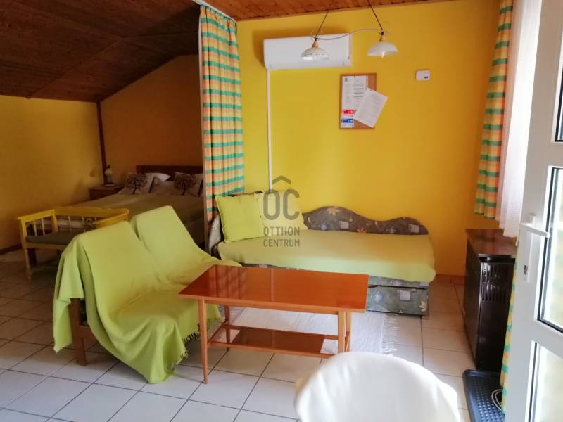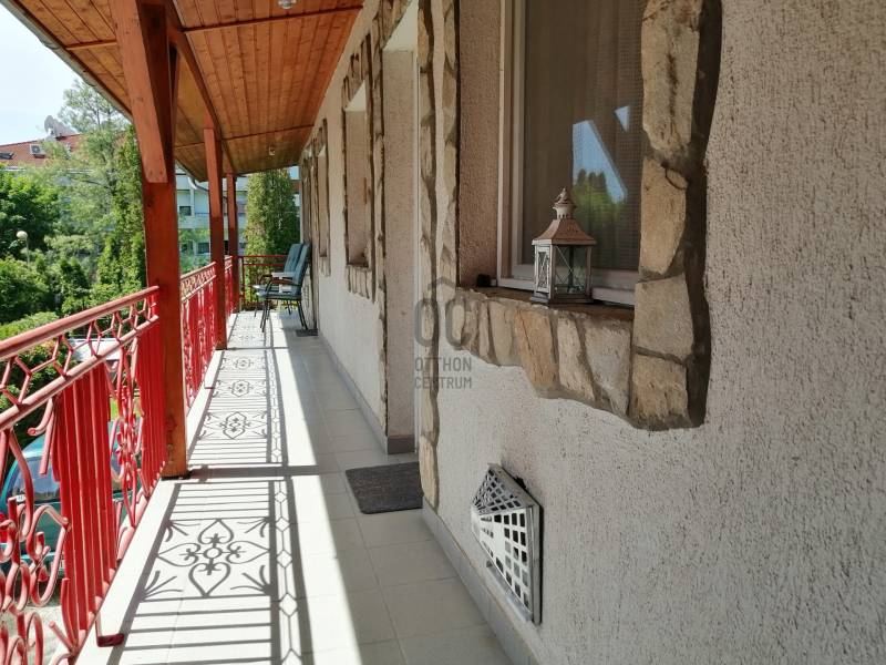 ELADÁSRA KÍNÁLOK A HÉVÍZI TÓFÜRDŐ KÖZELÉBEN TALÁLHATÓ CSALÁDI HÁZAT!AZ OTTHON CENTRUM KIEMELT KÍNÁLATÁBAN!Az ingatlanról bővebben:- A családi ház 632 négyzetméteres területen található. Gondozott kerttel, mely alkalmas nyári sütögetések helyszíneként.- A ház az 1970-es évek elején épült. Ekkor került kialakítása a földszint és az első emeleti lakrész. Majd ezt 1987-ben bővítették még egy szinttel.Ezután 2004-ben két garázst, egy fedett beállót, és azok tetején pedig két apartmant alakítottak ki. Mely kiadása rendszeres jövedelmet biztosíthat a leendő tulajdonosának.A szintek elrendezése:- Akadálymentesített földszinti lakrészben helyt kapott 2 hálószoba, konyha étkezővel, fürdőszoba, külön wc.- Az első emeleten szintén 2 hálószoba, konyha étkezővel, fürdőszoba, és külön wc.- A második emeleten pedig 2 kisebb hálószoba, konyha étkezővel, fürdőszoba, és egy tágas nappali erkéllyel, ezenkívül egy kisebb vendégszoba a tetőterében.- A 2 garázs felett pedig kialakításra került a 2 db apartman.- A ház fűtéséről gáz cirkó kazán gondoskodik, mely a 21nm-es pincében található. Amennyiben a hagyományos fűtést kedveli, kémények találhatóak az ingatlanon tehát az is működtethető.- Földszinti lakó részt 5 cm-es belső szigeteléssel látták el és az apartmanokat szintén.- A tetőtér és a két apartman klímatizált.- A ház ipari árammal ellátott.- Nyílászárói 80 százalékban műanyag szerkezetűek csak a második emeleti lakórésze rendelkezik fa nyílászárókkal.Az igényesen kialakított, és karbantartott kertben, akár sütögetni lenne kedvünk, akár csak pihenni szeretnénk, minderre lehetőségünk van.Hévíz fő nevezetessége az Európában egyedülálló természetes tőzegmedrű melegvizű tava, melynek köszönhetően a település Magyarország egyik első számú turisztikai célpontja.Ezenkívül elérhető távolságra található a Zala Springs Golf Resort.Mind a helyi adottságok, mind a régió közkedvelt a pihenni vágyók körében.Kiváló lokációjának köszönhetően nagyszerű lehetőségeket rejt magában kiadás szempontjából.Amennyiben felkeltette érdeklődését keresem bizalommal