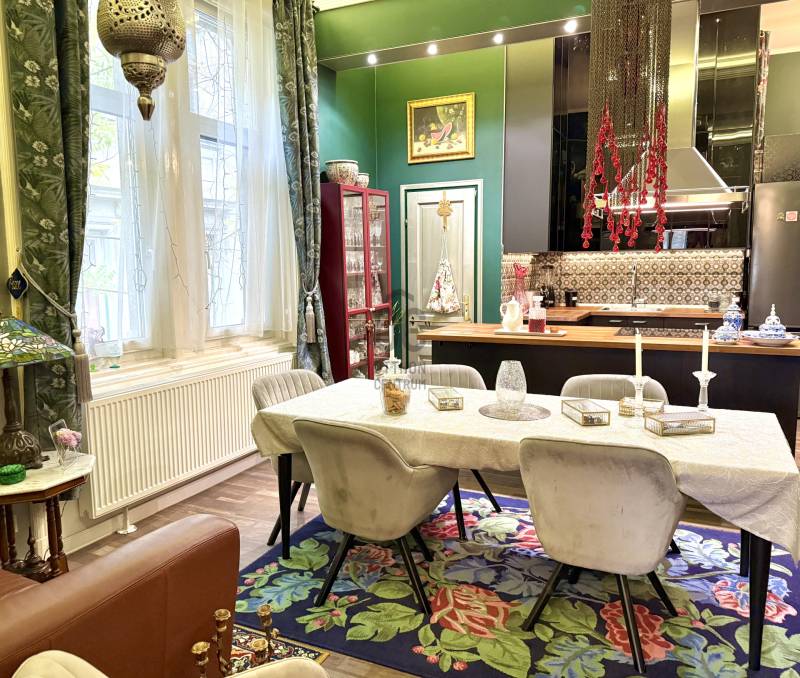 A város egyik legkarakteresebb, századfordulós palotájában kínáljuk megvételre ezt a kivételes hangulatú, több mint százéves építészeti részleteket megőrző, tágas terekkel rendelkező műtermi lakást. Az ingatlan igazi kuriózum: a felső szinten kapott helyet a ház eredeti műterme, amely óriási belmagasságával és monumentális ablakfelületeivel páratlan fényt és atmoszférát biztosít. A napfény gyönyörűen járja be a teret, így alkotói munkához és nagyvonalú nappaliként is tökéletes.LAKÁS ÖSSZEFOGLALÓ- 2. emelet, 195 m² nettó alapterület + 2 db utcai nézetű erkély - Belső kétszintes, a felső szinten található a 48 m²-es műterem monumentális ablakokkal és kiváló fényviszonyokkal- Az alsó szint alapterülete 116m², ezen a szinten található az amerikai konyhás nappali és további 3 szoba + 2 fürdőszoba+WC, továbbá kamra és egyéb helyiségek- Alsó szint belmagassága: 3,9m- Műterem belmagassága: 5,1m- A lakás 2018-ban gépészeti felújításon esett át, minden vezeték és a fűtésrendszer korszerűsítve lett- Közös költség: 53.625 HUF/hó - Fűtése: egyedi cirkó gázfűtés TÁRSASHÁZ- 1898-ban építették eklektikus stílusban, a lakás a villatulajdonos saját lakrésze volt- Eredetileg elegáns panziónak épült, egészen az 1930-as évekig fogadta a vendégeket- A tégla építésű társasház lift nélküli, 14 lakásos- A felújítási - és karbantartási munkálatok rendszeresek, a lakóközösség kultúráltAmennyiben további információra van szüksége, vagy megtekintené az ingatlant, várom hívását, kérem, keressen bizalommal!+ Az energetikai tanúsítvány készítése folyamatban van, amint rendelkezésre áll, úgy azzal a hirdetés frissítésre kerül.