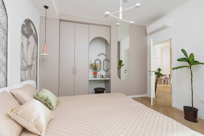 AZONNAL KÖLTÖZHETŐ!A képeken is látható berendezést, gépesítést, interiort tartalmazza az ár!Budapest I.kerületében, Gellért-hegy és Naphegy közvetlen találkozásánál eladó zöld és csendes utcában, de mégis központi helyen 3 szobás, erkélyes, gyönyörű napfényes sarki lakás, mely teljes felújításon esett át minden részletében. Átgondolt, letisztult modern design jellemzi. Minden helyiségben klíma és redőny! Alacsony közös költség- és rezsijű lakás!Az ingatlan egy szép homlokzatú, liftes modernista épületben található, mely a Bauhaus esztétikáját idézi. Ez a környék a régi budai polgári világ és a modern városi élet találkozása. Bár a környék idillien nyugodt, a város minden pontja gyorsan megközelíthető:Buszok: 8E, 110, 112, 178 (Deák tér, Ferenciek tere, Astoria irányába)Villamosok: 17, 56, 59, 61 (Széll Kálmán tér, Móricz Zsigmond körtér)M4 metró: Szent Gellért tér – kb. 10 perc sétaAutóval: közvetlen kapcsolat az Erzsébet híddal, BAH-csomóponttal és Alkotás úttalA parkolás jellemzően utcai, fás oldalsávban, az utca forgalma kifejezetten alacsony.Lokáció:A közelben található:Gellért-hegy és Citadella – 5 perc sétaTabán park – 3 perc gyalogGellért Szálló és Fürdő – 8 percMOM Park bevásárlóközpont – 4 perc autóvalDéryné Bisztró (Krisztina tér 3.), Tabáni Terasz Étterem (Krisztina krt. 1.) néhány perc alatt elérhető.