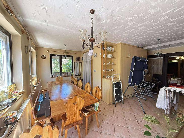 XVI. kerületben, Rákosszentmihály csendes mellékutcájában eladó egy 315 m²-es, háromszintes családi ház 547 m²-es telken. Az ingatlan nyugodt, rendezett környezetben helyezkedik el, ugyanakkor a tömegközlekedési és bevásárlási lehetőségek rövid időn belül elérhetők.A HÁZ JELLEMZŐI:A ház 1984-ben téglából épült, 1994-ben bővítésen esett át. Palatető fedi, a villanyvezetékek rézből készültek. Fűtését gázkazán biztosítja. A nyílászárók fa szerkezetűek, jó állapotúak, thermo üvegezéssel. A szobák fa parkettával burkoltak, míg a vizes helyiségek hidegburkolatot kaptak. Az ingatlan világos, tágas tereinek köszönhetően kiválóan alkalmas akár két generáció együttélésére, akár vállalkozási célra.Az épület három szinten helyezkedik el. A földszint 144 m² alapterületű, ahol előtér, nappali, két hálószoba, konyha, étkező, fürdőszoba, külön mellékhelyiség és terasz található. Az emelet 126 m²-es, itt egy előtér, hat hálószoba, valamint egy mellékhelyiséggel ellátott fürdőszoba került kialakításra. A pince szint 114 m²-es, ahol közlekedő, szauna, fürdőszoba, kamra, dolgozószoba, biliárd helyiség, tároló és garázs kapott helyet.A telken kétállásos garázs, valamint további két különálló épület található, amelyek műhelyként, raktárként vagy további garázsként is hasznosíthatók.A közelben néhány percen belül elérhető a 174-es, 244-es és a 996-os busz. Az ingatlan hitelre is megvásárolható, bankfüggetlen tanácsadóink díjmentesen segítenek megtalálni az Ön számára legkedvezőbb finanszírozási megoldást. Irányára: 149,9 millió forint.Vevőink részére a közvetítés díjtalan. A hirdetésben szereplő adatok tájékoztató jellegűek. Várjuk hívását munkanapokon 9 és 19 óra között. Amennyiben saját ingatlanát értékesítené, kérjen ingyenes értékbecslést, kifejezetten a XVI. kerületre szakosodott irodánktól.