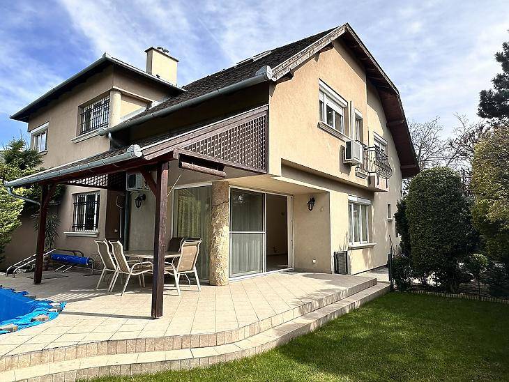 Ikerház eladó Budapest XVI. kerületében – Rákosszentmihály csendes, kertvárosi részénBudapest XVI. kerületének egyik legkedveltebb, nyugodt utcájában, Rákosszentmihály Zuglóhoz közeli részén kínálunk megvételre egy nettó 220 nm-es, kétszintes + tetőteres, nappali + 4 szobás, dupla komfortos ikerházat, kiváló műszaki állapotban.Az ingatlan dél-nyugati fekvésű, így egész nap világos, napfényes tereket biztosít. A gondosan kialakított, teljesen intim, beláthatatlan kert tökéletes helyszín pihenéshez és családi programokhoz.Főbb jellemzők:Nettó 220 m² lakótér Nappali + 4 szoba Dupla komfort Két szint + tágas tetőtér Önálló helyrajzi szám, tehermentes Műszaki tartalomÚj, energiatakarékos kazán Kombinált padlófűtés + radiátoros rendszer Klímaberendezés Modern kamerarendszer és riasztó Elektromos kapu és garázsnyitó Extrák – ami igazán különlegessé tesziFűthető kültéri medence – akár hosszabb szezonban is használható Hangulatos kerti sütő és pihenőtér Tágas tetőtér, amely jelenleg hobbi- és konditérként funkcionál (igény szerint alakítható) ElrendezésAlsó szint:Előszoba Nappali Konyha + étkező Kamra Mellékhelyiség Garázs Felső szint:3 külön nyíló szoba Gardrób 2 fürdőszoba Mellékhelyiség KözlekedésPár perc sétával elérhető buszjáratok:31, 92, 92A, 130, 131, 144, 231, 931Irányár: 299,9 millió FtFinanszírozásAz ingatlan banki hitellel is megvásárolható, teljes körű, díjmentes ügyintézési segítséget biztosítunk.A hirdetésben szereplő adatok tájékoztató jellegűek.