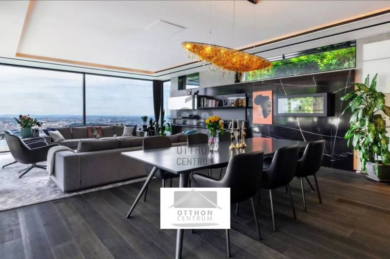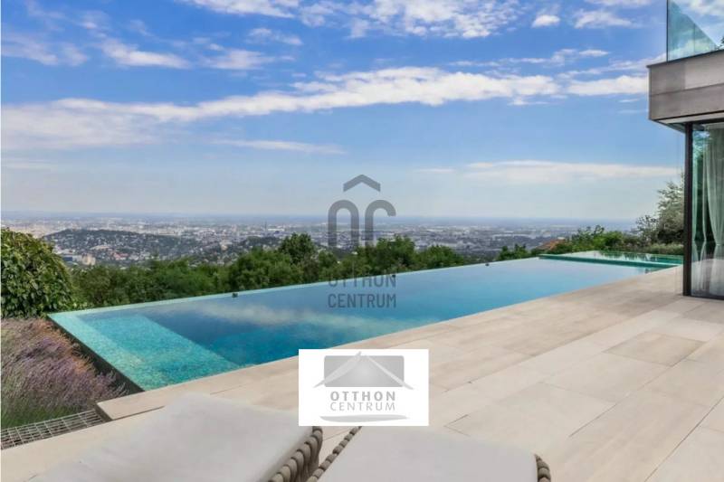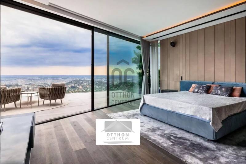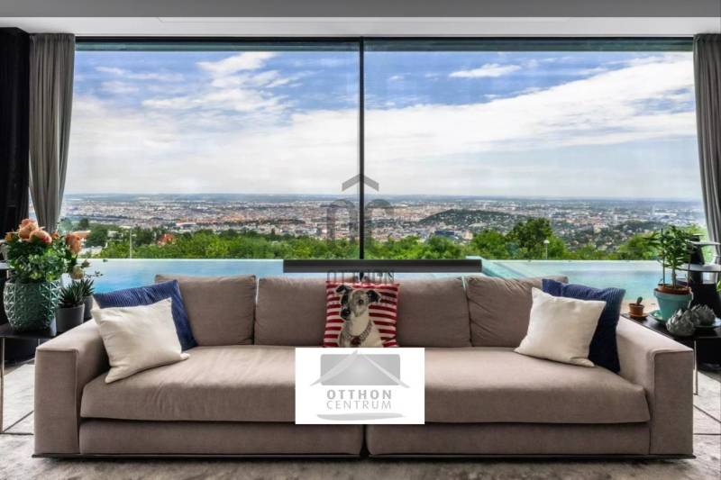 Budapesten 12. kerület kedvelt részén eladásra kínáljuk ezt a kivételesen jól felszerelt, példátlan minőségben megépült, letisztult, modernista luxusvillát.A Széchenyi-hegy déli lejtőjén a város felett, egy 1700 nm telken a földből nő ki ez a 746 négyzetméteres ingatlan, amely nem egy szimpla lakóépület, hanem nagy léptékű építészeti gondolatok és tekintélyes építtetői ambíció manifesztuma. Az épület panorámája lenyűgöző, többek között a Dunára, a Parlament épületére és a Budai Várra láthatunk rá a ház földszinti emeleteitől már.A villa egy parkosított, két utcafronti telken helyezkedik el, amely az egészséges és jó levegő mellett egyszerre biztosít meghittséget, nyugalmat és tökéletes feltételeket a kikapcsolódásra.Ez az épület egy kimagasló építészeti minőséggel létrehozott lakóház, amely a funkció, a forma és a táj viszonyát a lehető legpontosabban értelmezi újra. Egy ritka, letisztult példája annak, hogy a magasépítészet hogyan tud időtállóan válaszolni egy egyedi telek adottságra, egy adott városi kilátásra és egy igényes megbízói vízióra.A ház úgy illeszkedik a terepadottságokhoz, hogy közben erőteljesen kijelöli saját tengelyét: a vízszintes és függőleges arányok mind arra szolgálnak, hogy a látvány és a belső tér egymást kiegészítve váljanak élménnyé. A belsőépítészet nem akar konkurálni a panorámával, hanem kiegészíti és támogatja azt.HÁZRÓL:- 746 nm, 4 szintes, pontos méretek az alaprajzokon találhatóak,- 170 nm örök panorámás terasz medencével, pezsgőfürdővel,- prémium minőségben és anyagokkal épített,- szinte a teljes szintet elfoglaló, amerikai konyhás nappali étkezővel,- 4 hálószoba,- 4 fürdőszoba,- gardrób szoba,- 6 állásos garázs,- borospince,- tárolók,- SPA helyiség,- szauna,- napelem rendszer,- hőszivattyús fűtés-hűtés,- gazdaságos fenntartású.A kültér és beltér határát szinte teljesen elmosó teraszok nemcsak a használhatóságot bővítik, hanem térérzetet is teremtenek: a város látványa nem háttér, hanem építészeti koncepció komponenssé válik. A nappali és a kiszolgáló helyiségek egyaránt alkalmasak a családi pihenésre, de kiváló helyet biztosítanak akár egy nagyszabású társas összejövetelre is. A teraszkapcsolatos, panorámás nappali és a teraszon lévő kültéri medence egyedülálló élményt nyújt használóinak minden napszakban.Az épület egy teljesen felszerelt wellness-fitnesz-fürdő típusú pihenőtérrel is rendelkezik, mely magában foglal egy fedett edzőtermet, egy szaunát.A hatállásos gépkocsitároló, a reptéri üzletekre emlékeztető borospince és sportszer tároló vagy az úszómedence mind a kortárs életforma kiszolgálásának eszközei, precízen megtervezett részei egy jól szervezett kényelmi egységnek.TOVÁBBI EXTRÁK:- ABB elektromos rendszer, teljes okosotthon rendszer,- SOREG ablakok/tolóajtók Németországból,- HELIOS páratartalom szabályozás,- INEOS geotermikus fűtés/hűtés, padló/mennyezet (Svédország) ,- Fancoil rendszer (+ tartalék földgáz, VIESSMANN a medence fűtéshez)- BANG @ OLUFSEN TV-k (7 db) + hangrendszer az egész házban, teljes egészében a dán B&O által építve,- MINOTTI és bútorok Olaszországból,- ANTONIO LUPI fürdőszoba bútorok és kiegészítők (Olaszország),- SICIS medence és jakuzzi csempék, teljes automatizált rendszer (Olaszország).Jelenleg bérbe van adva havi 25 000 000 euro/hó+rezsi összegben.Ez az impozáns villa kitűnő választás azoknak az ingatlanvásárlóknak, akik szinte kompromisszumok nélkül, egyedi külső és belső adottságokkal szeretnék otthonukat élni.Nézzük meg együtt, ha szeretné, mert meglátja valóságban és azonnal beleszeret!