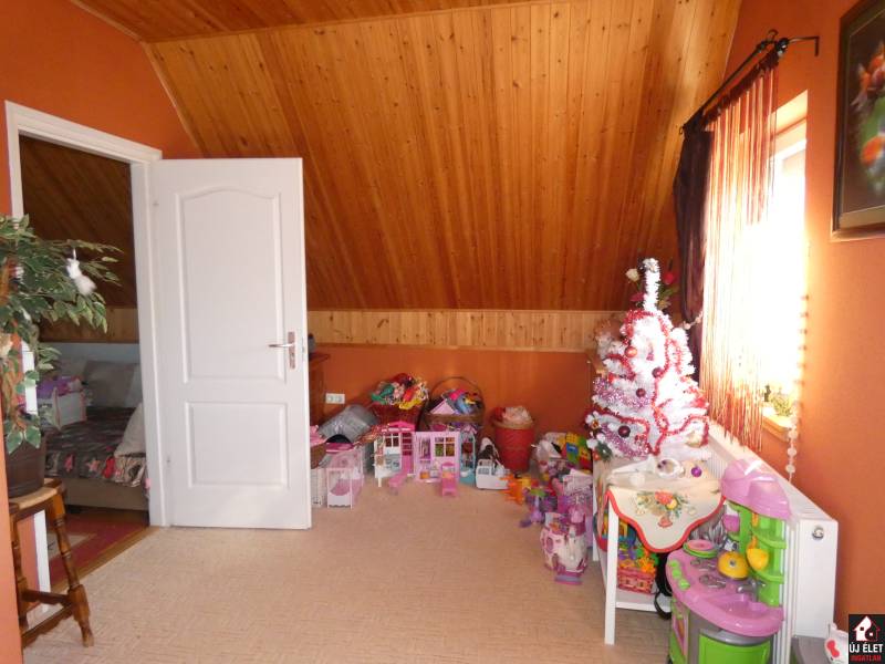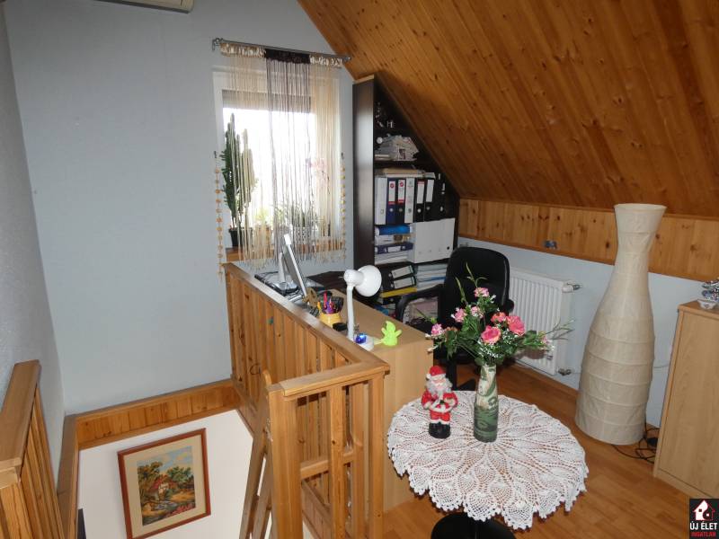 Eladó Mogyoródon, Tölgyes-Bolnokán egy PANORÁMÁS, ÚJSZERŰ, emeletes, dupla fűtésrendszerrel rendelkező családi ház egy 1.034 m2-es telken NÉHÁNY MÉTERRE AZ ERDŐTŐL.A ház földszintje 44 m2 + a tetőtér nettó 16 m2 (bruttó 34 m2) + a szuterén szint nettó 28 m2.Illetve a telken található még pluszban egy 25 m2-es melléképület + egy 28 m2-es dupla beállású lemezgarázs is.A földszinten egy amerikai konyhás nappali, egy fürdőszoba, egy külön wc helyiség, egy előszoba és egy közlekedő található.A közlekedőből tudunk felmenni az emeletre, ahol egy hálószoba, egy nappali, egy wc kézmosóval, és egy erkély található, ami LÉLEGZETELÁLLÍTÓ ÖRÖK PANORÁMÁVAL rendelkezik a völgyben fekvő Szentjakab Parkfalura és a Sissy Villaparkra.Az alagsor kívülről közelíthető meg. Itt egy műhely, egy tároló és egy fürdőszoba helyiség található. (Ez akár egy külön kis garzonlakásnak is kialakítható. Azaz a ház kétgenerációssá alakítható.)Azaz a házban 2 fürdőszoba + 3 db wc található. (2 db wc külön helyiségben, a 3. pedig az egyik fürdőszobában.)A fűtés gázkazánnal történik, de egy kandallókályha is beépítésre került pluszban.Ha ön szereti a lobogó tűz látványát és hallani az égő fa ropogását, akkor a kényelmes gázfűtést időnként felcserélheti erre a romantikus, hagyományos fűtésre...A hűtésre a klíma szolgál.Az épület 30 cm Porotherm téglából épült és pluszban 10 cm szigetelést kapott.A telek kifejezetten hosszú. Az eleje sík, ahol a ház található, a hátsó része, a melléképület mögött lejt.A telek szélessége 14 méter.Az 2012-ben épült ház összközműves. Az áram, víz, csatorna, gáz az ingatlanba be van kötve.Az ingatlan MART ASZFALTOS ÚTON KÖZELÍTHETŐ MEG.... és mindez 3-4 perc sétára a HÉV megállótól. (Szentjakab megálló, innen 35 perc menetidő az Örs vezér tér, Gödöllőre pedig csak néhány perc.)Ha szeretne egy igazán természetközeli helyen élni, ahol harapni lehet a levegőt, madárcsicsergésre ébredhet, gyönyörű kilátásban gyönyörködhet a házából, és mégis autóval az M3-on keresztül 15 perc alatt be lehet érni Zuglóba, akkor ennél tökéletesebb helyet nem talál.Hívjon akár este, vagy hétvégén is!
